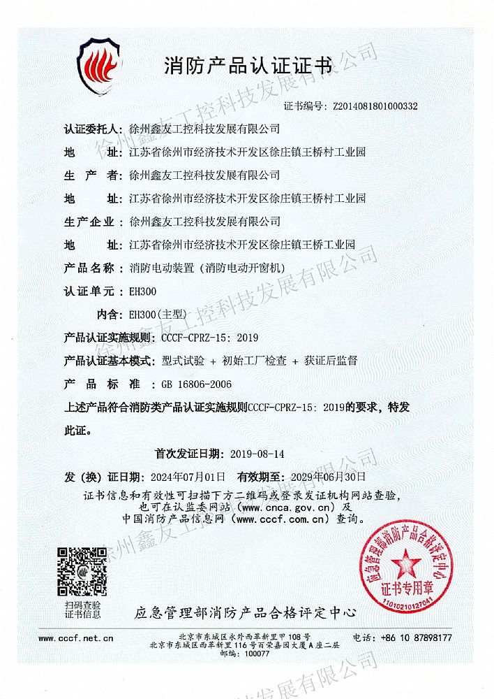 消防產(chǎn)品認(rèn)證證書EH300